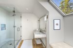 This remarkable residence features two wings seamlessly connected by a breathtaking glass-enclosed bridge, creating a sense of openness and light. The high-end chef’s kitchen is a culinary dream, fully appointed and complemented by a spacious recreation room and an elevator for effortless access throughout the home. Each bedroom is designed with spaciousness and comfort in mind, while the master suite serves as a private sanctuary, complete with a luxurious en-suite bathroom that offers a spa-like atmosphere with modern fixtures and elegant finishes.