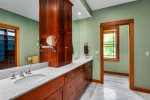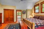 First Floor: Primary bedroom with a king bed and private full bath