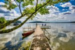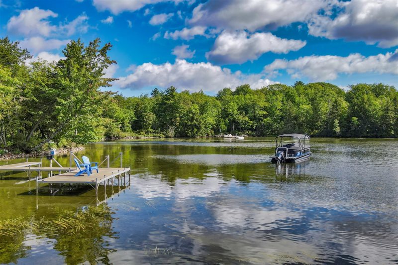 Situated on the quiet northwest corner of Great Pond and bordered by Rome Trout Brook, this private retreat features over three acres of beautifully wooded land with 250 feet of sandy-bottom waterfront and a large dock—ideal for swimming, boating, and family fun. Guests can even rent a boat to take across the lake to Belgrade Lakes Village for morning donuts, afternoon ice cream, or an evening out at the Village Inn.