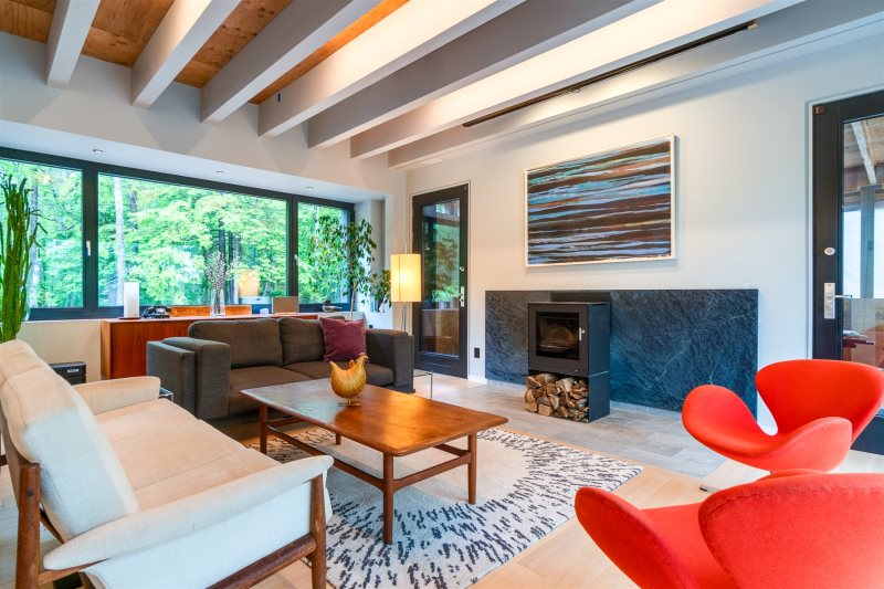 Tucked along one of Yarmouth’s most picturesque country roads, 40 Russell’s Hill Road offers a rare blend of coastal proximity, natural beauty, and quiet privacy. Surrounded by mature trees and natural greenery, the home sits within a beautifully private yard filled with woodland paths and walking trails, creating a peaceful retreat where mornings begin with birdsong and evenings unfold beneath a canopy of stars.